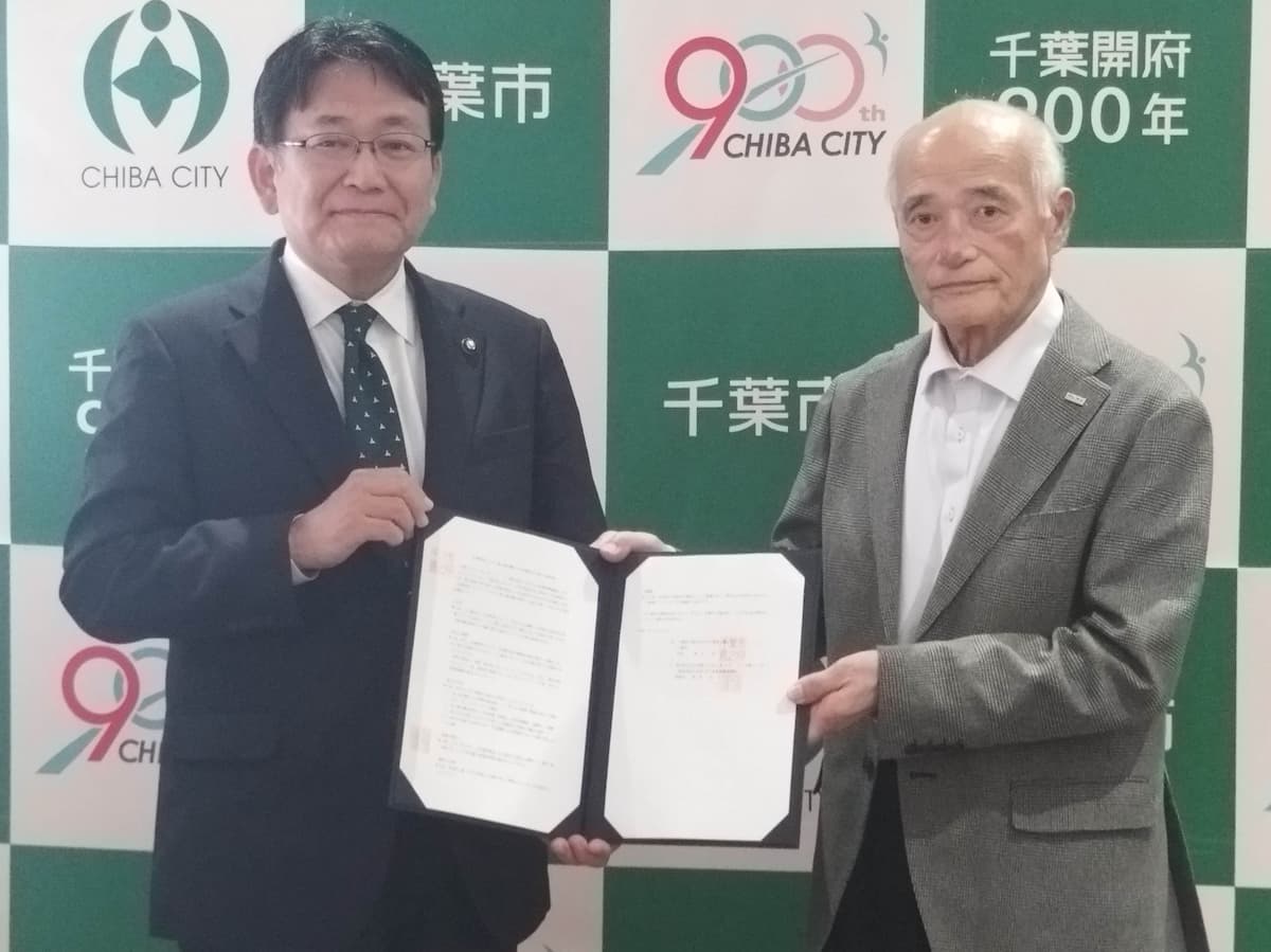 - 千葉市長:神谷俊一様 (左)とJUIDA副理事長:千田泰弘(右)
