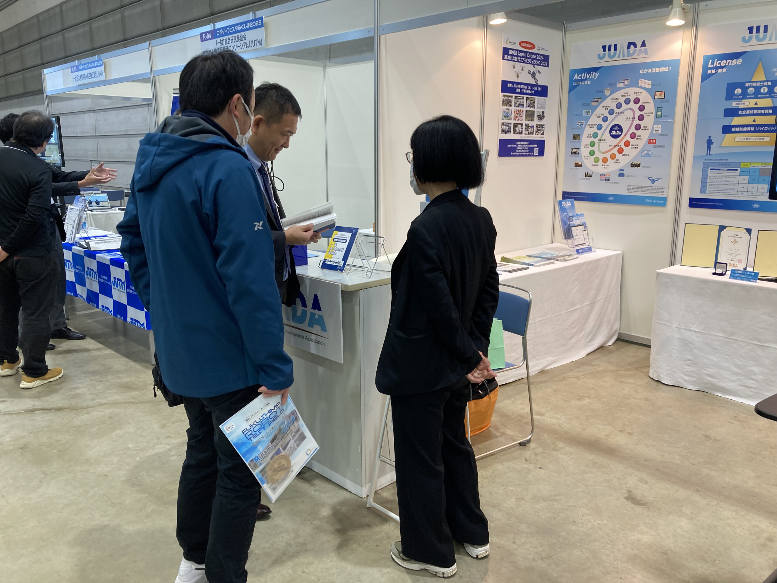 2023年11月22日(水)~11月23日(木・祝)の2日間、福島県主催、JUIDA後援・出展『ロボット・航空宇宙フェスタふくしま 2023』が、福島県郡山市のビッグパレットふくしまにて開催されました。JUIDAのブースではJUIDA認定スクールに関する説明や、その他JUIDAの取組みについてご紹介いたしました。 2日間にわたり、福島県および東北地方をはじめ遠方からも、JUIDA会員の方、JUIDA認定スクールにご興味をお持ちの方々がブースへ多数お越しくださいました。ご来場いただきました皆様へ、心より御礼申し上げます。