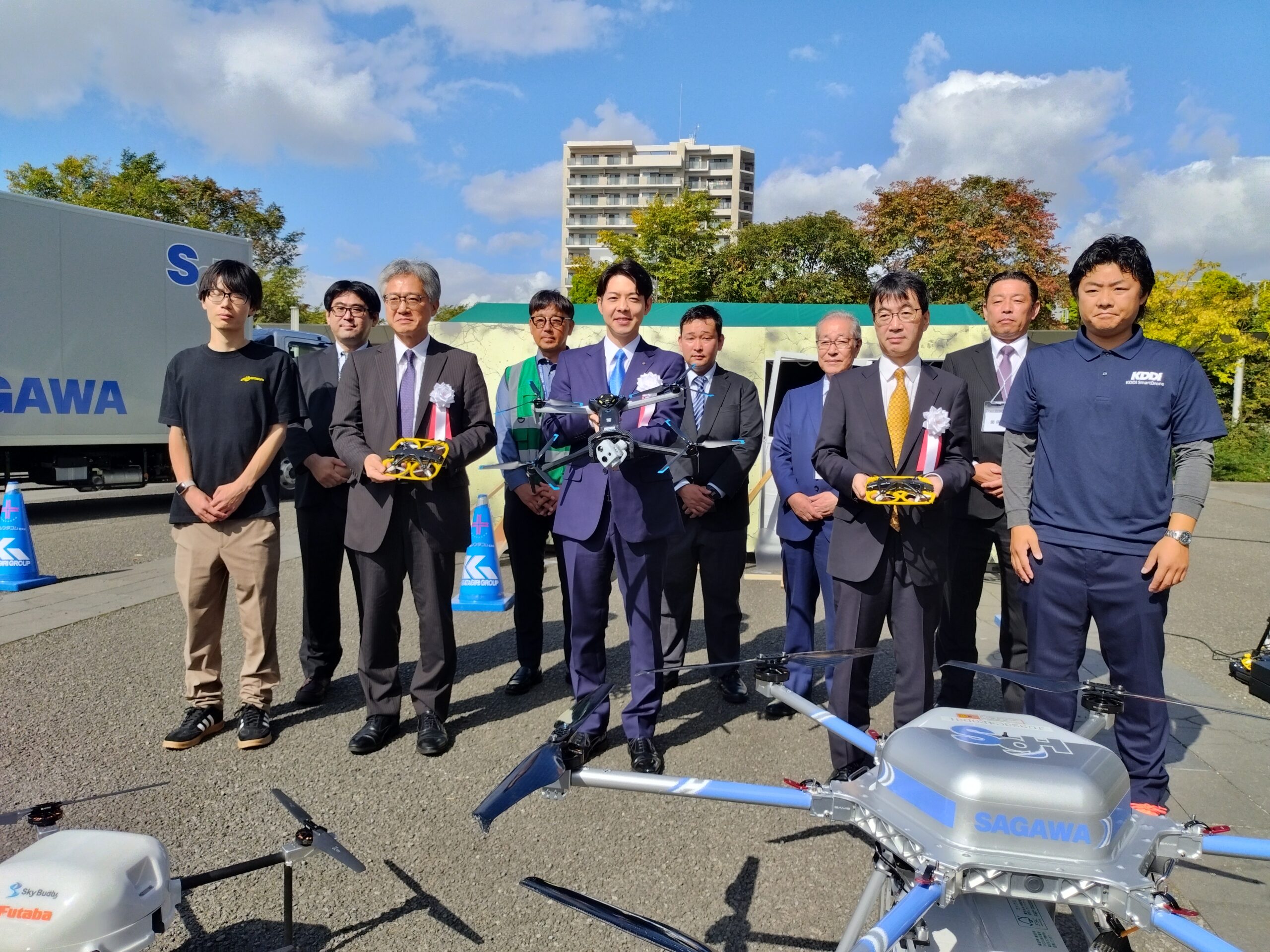 ■10月1日に2回、2日に1回のデモフライトを企画・運営致しました。JUIDAが統括した能登半島地震を模擬した内容で、当時能登半島で協力いただいた29社の内6社の企業様(KDDIスマートドローン、佐川急便、チェンジ、日本DMC、双葉電子工業、リベラウェア)に参加いただきました。なお、初日の1回目は北海道知事及び国の来賓の視察も行われました。