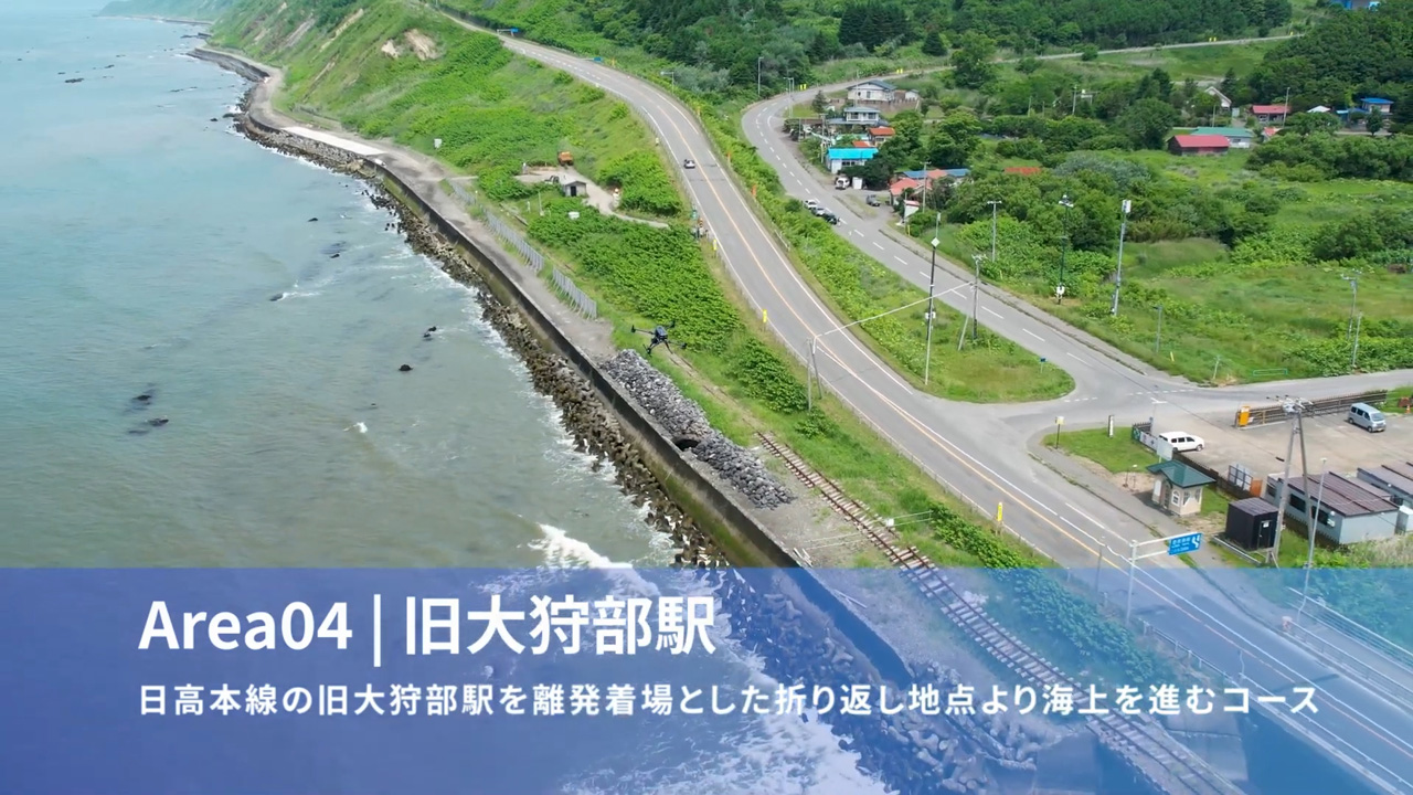 - 日高線跡地では線路上空2kmの直線的な飛行ができます