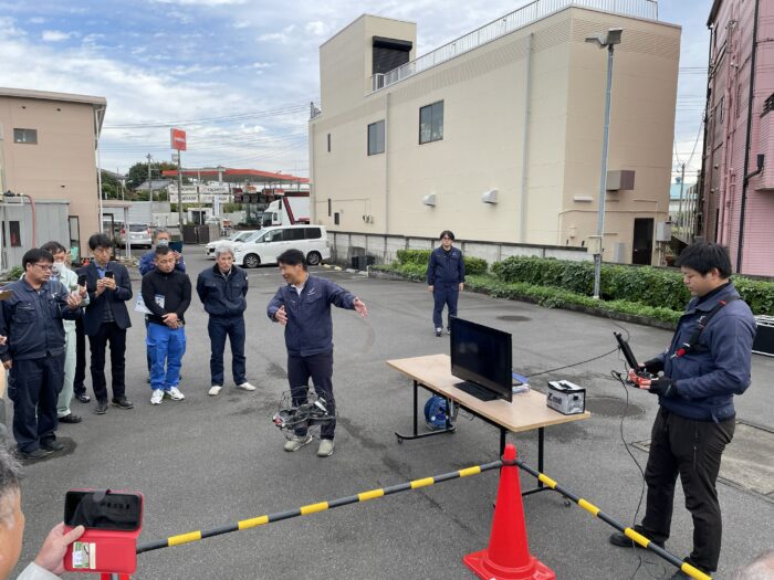 こうした背景を踏まえ、JUIDAは株式会社Liberawareおよびブルーイノベーション株式会社の協力のもと、管路協関係者を対象に実機デモおよび技術説明を実施しました。実際の下水道管路環境を想定したデモンストレーションを通じて、地下空間・下水道施設におけるドローン運用の可能性と有効性を提示しました。