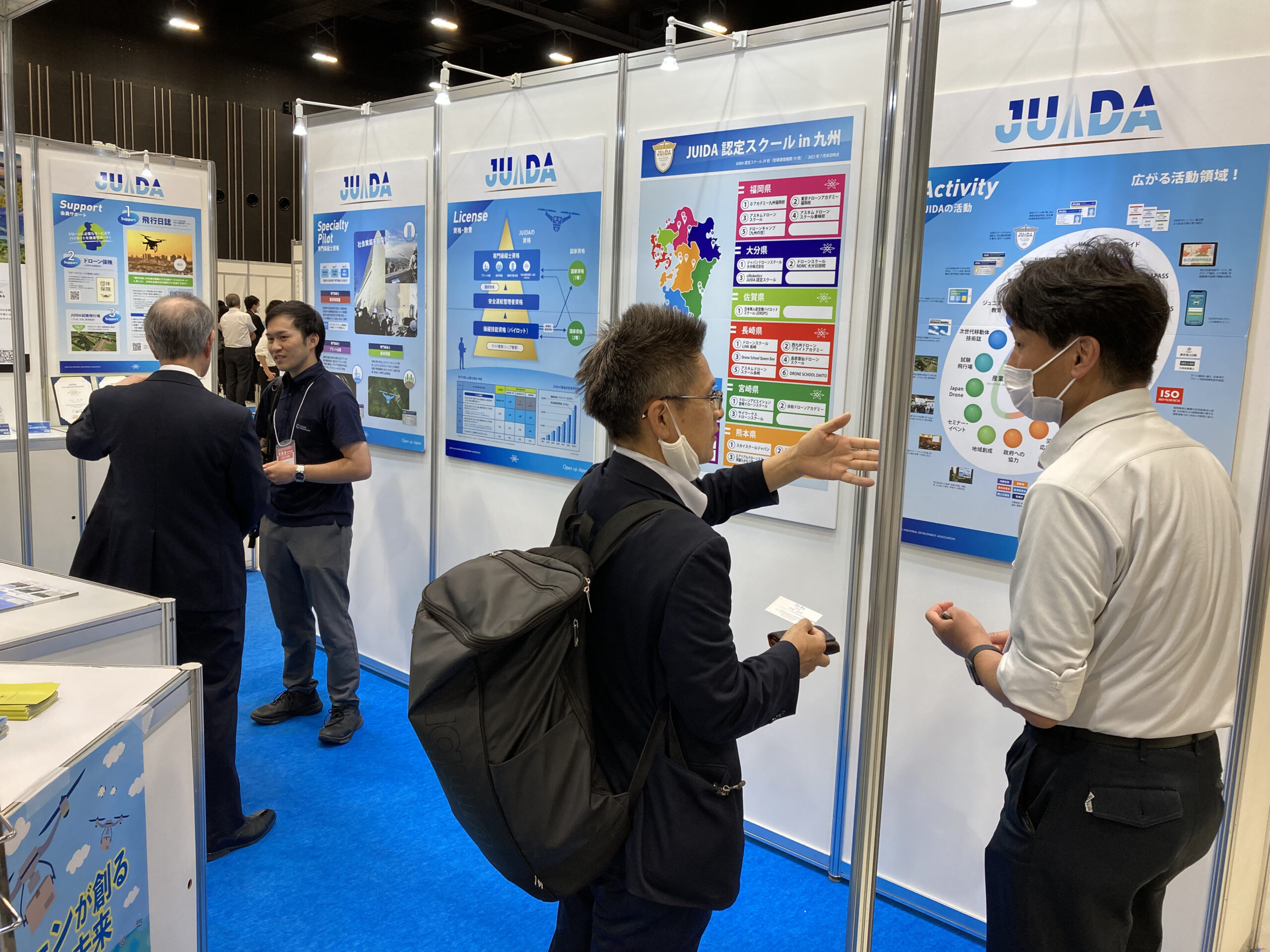 JUIDAは長崎県にあるJUIDA認定スクール6校にご協力頂き、JUIDAと認定スクールの共同ブースを設置。ライセンス取得を希望される来場者にむけてドローンスクールのご説明・ご紹介のみならず、JUIDA認定スクール間の情報交換の場としても非常に有意義なものとなりました。