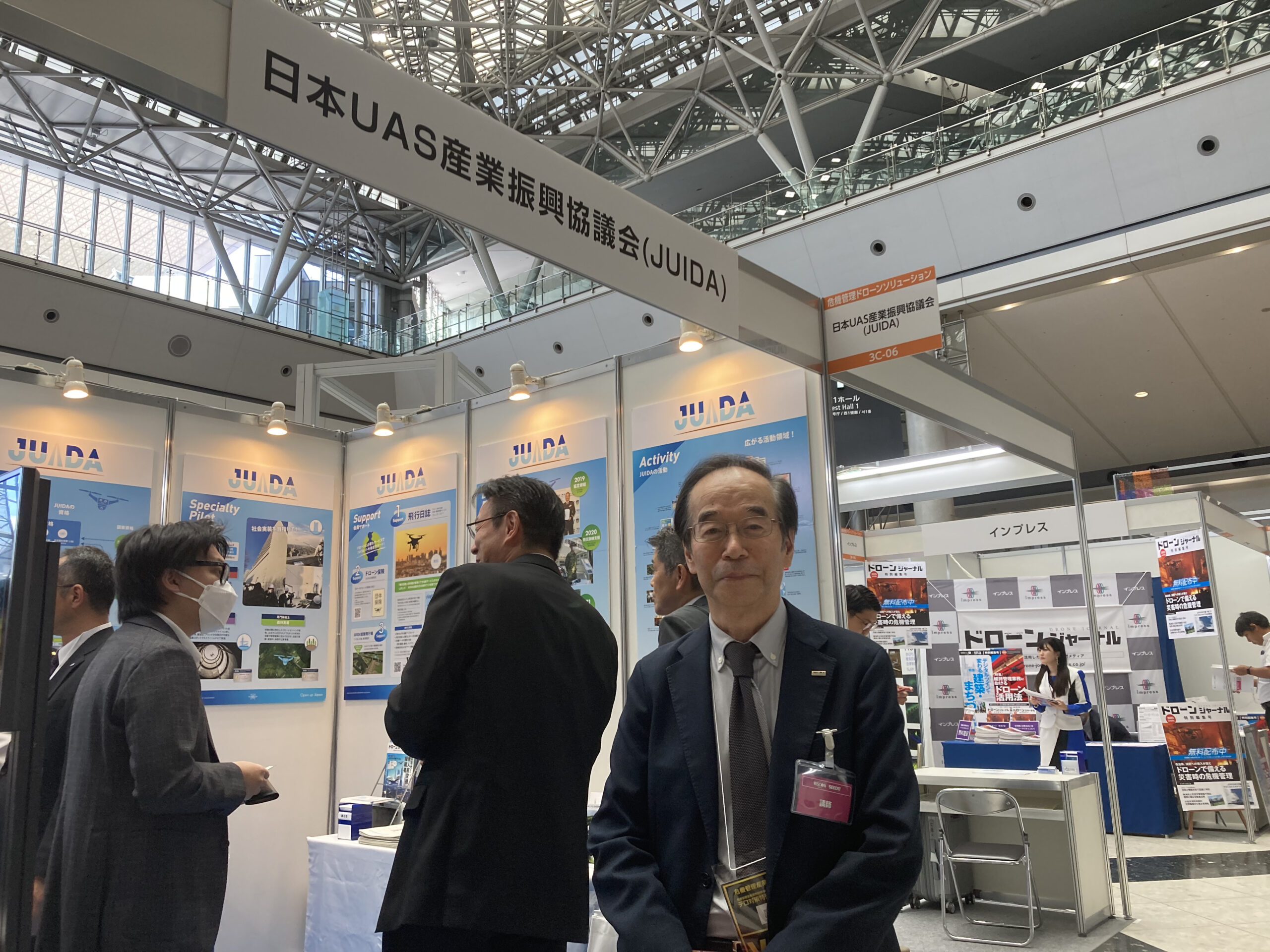 鈴木理事長の講演「ドローンのレベル4飛行社会実装、および空飛ぶクルマ運航実現に向けた課題と展望」では、多くの皆様にご聴講いただきました。講演終了後は、聴講された皆様もJUIDAブースにお越しいただき、いろいろなお話しをすることができました。